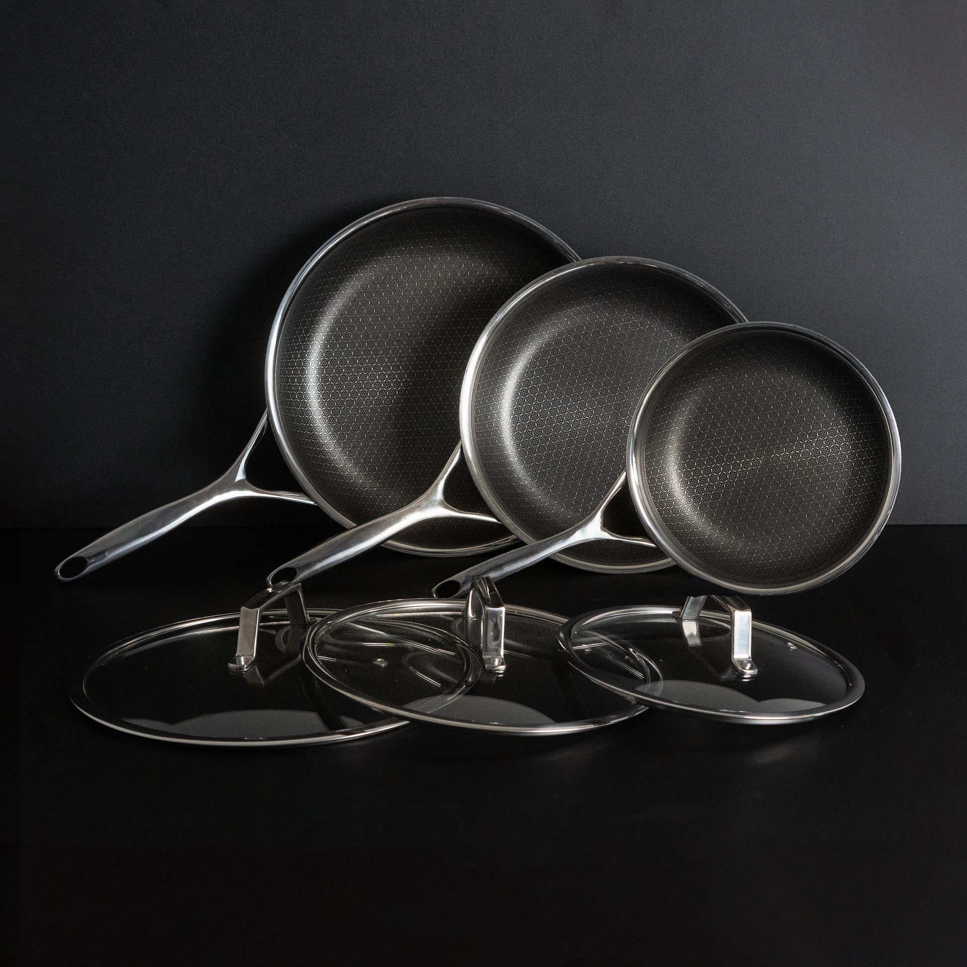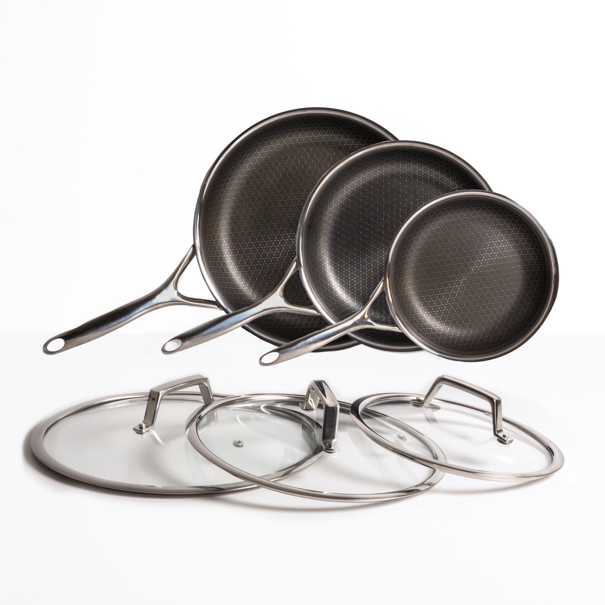 Juego de sartenes híbrido Ø 20, 24 y 28 3 piezas con tapas
